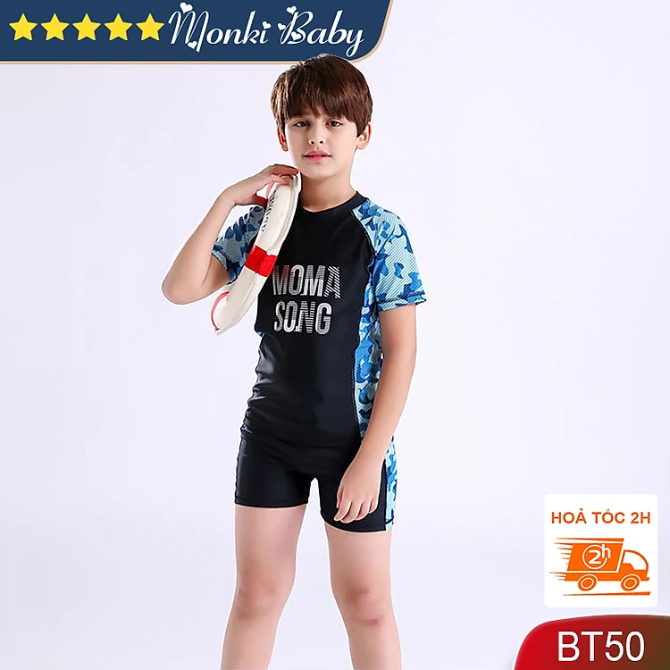 Đồ bơi cho bé trai vừa và lớn size đại đến 55kg, mẫu thun bơi cao cấp, dáng áo cộc tay quần sooc đùi thể thao, có kèm mũ | BT40