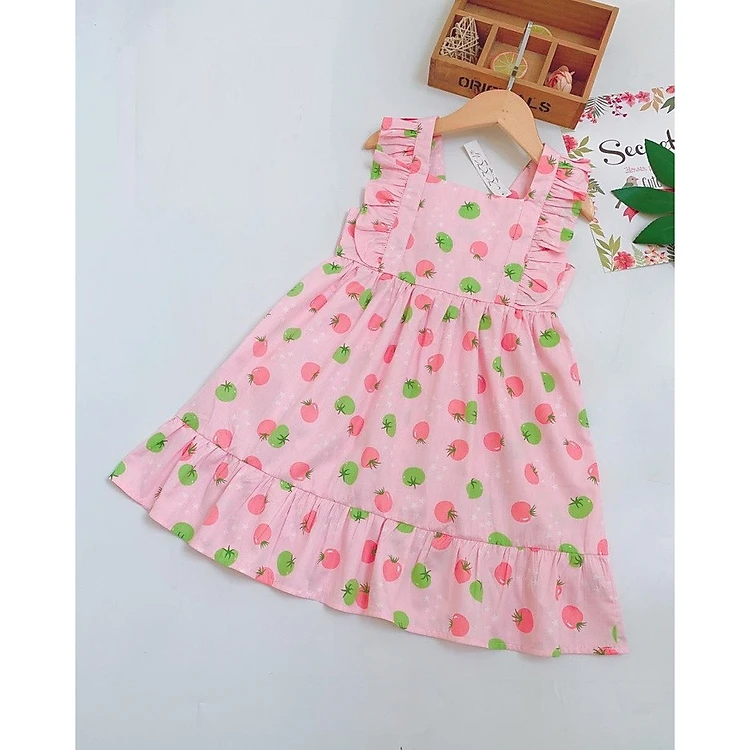 Váy hai dây quả táo bé gái 7-12 tuổi chất liệu vải thô