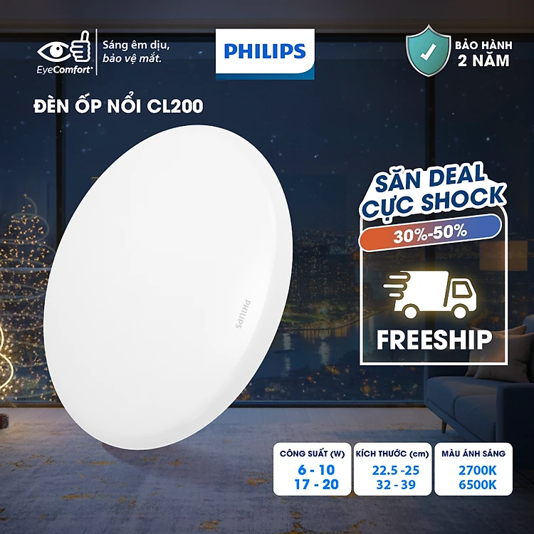 Bộ đèn PHILIPS LED ốp trần tròn CL200 - Công suất ( 6W, 10W,17W,20W) ánh sáng vàng, ánh sáng trắng
