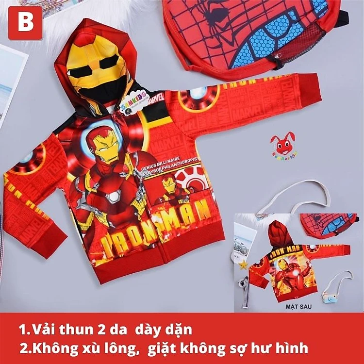 Áo khoác bé trai hình siêu nhân từ11kg-40kg. Chất thun hai da dày mịn - Kiến Lửa