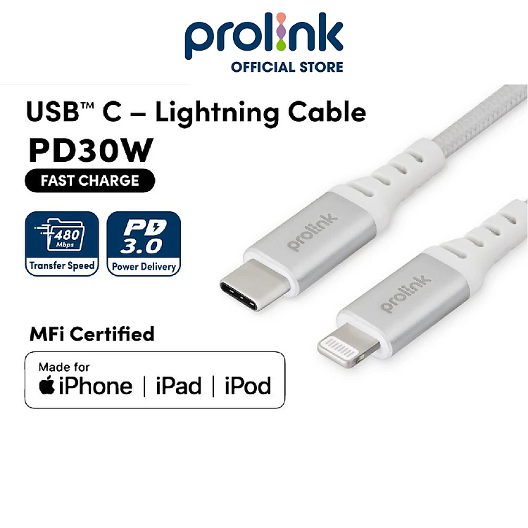 Dây sạc type C to L PROLiNK GCL_30_01 dài 1M, Sạc siêu nhanh 30W, Dành cho iPhone, iPad (MFi) - Hàng chính hãng