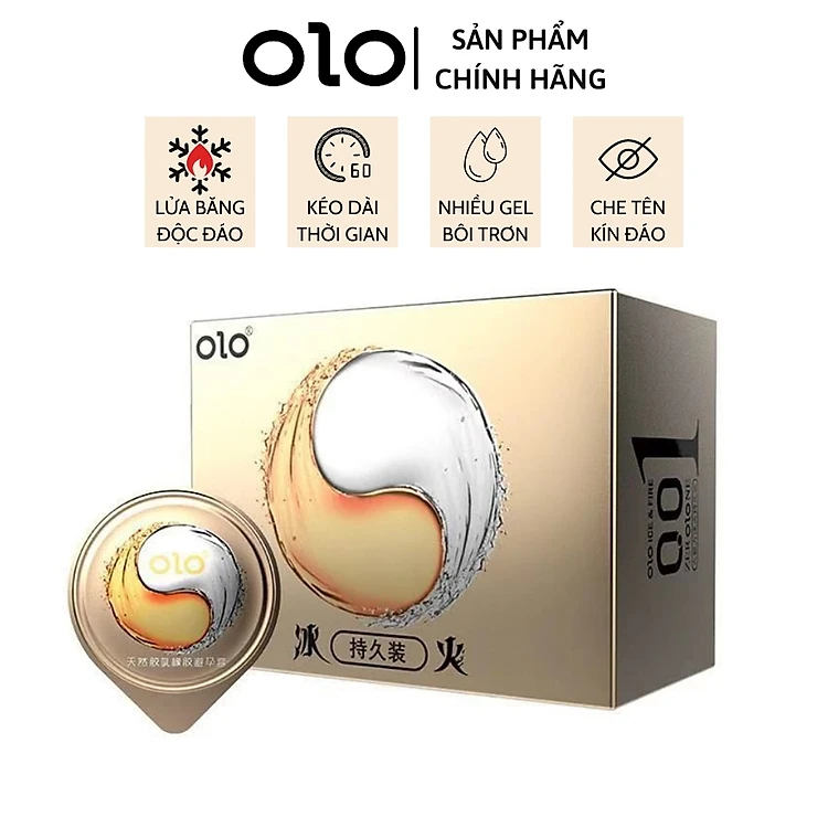 Bao cao su OLO tăng hưng phấn Ice & Fire lửa băng, siêu mỏng, nhiều gel - Hộp 10 bcs