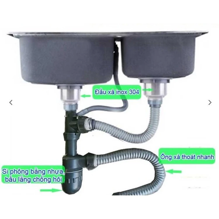XI PHÔNG,BỘ XẢ CHẬU RỬA CHÉN 2 HỘC INOX 304 PHI 140mm