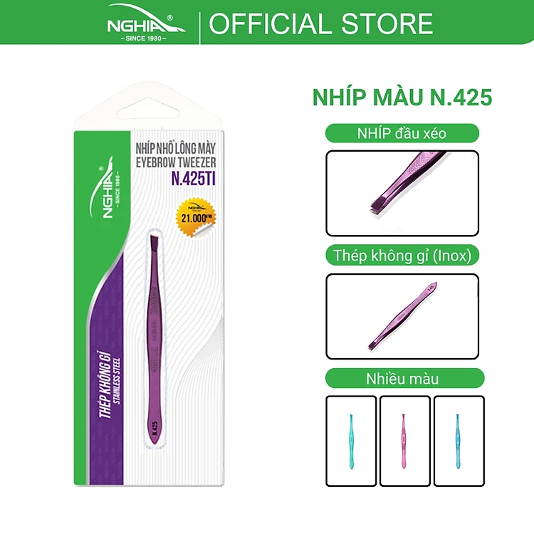 Nhíp Inox Đầu Xéo Nhổ Lông Mày Cao Cấp Kềm Nghĩa N.425