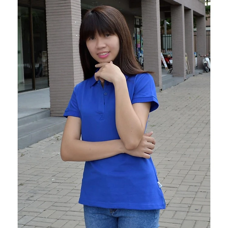 Áo thun nữ vải cá sấu co giãn 4 chiều, kiểu may cao cấp cổ bẻ, tay bo, có xẻ lai - Màu xanh bích