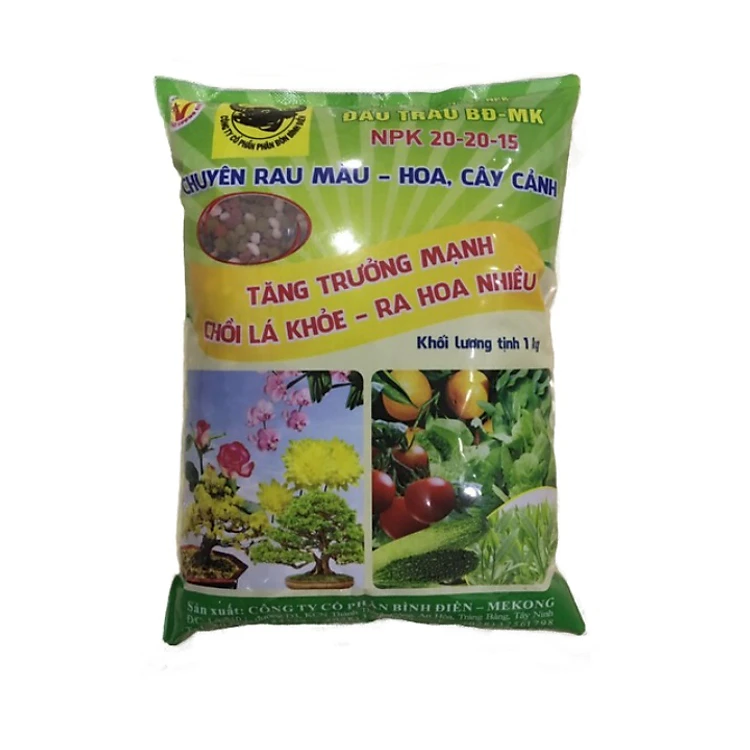 Phân bón đầu trâu MK NPK 20-20-15 đa năng cho hoa kiểng- rau màu cao cấp gói 1Kg
