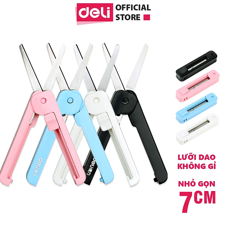 Kéo mini tiện lợi 105mm Deli - 5 màu Đen/ Xanh/ Hồng/ Trắng - Dành cho văn phòng, học sinh, sắc bén - 6072
