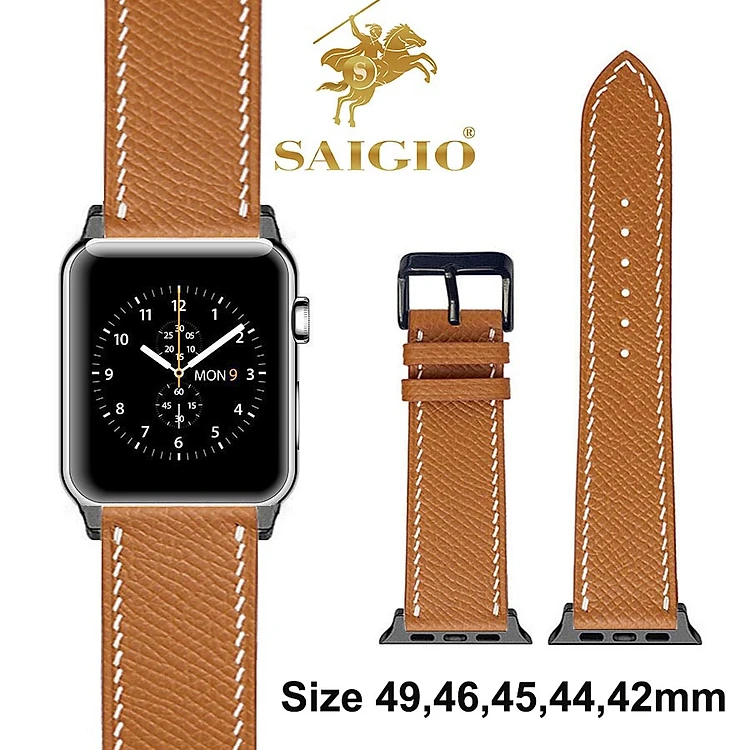 Dây Đồng Hồ Apple Watch 49mm 46mm 45mm 44mm 42mm, Chất Liệu Da Bê EPSOM Thảo Mộc Cao Cấp, Nhập Khẩu Từ Châu Âu, Dây Đeo Phong Cách Hiện Đại và Sang Trọng, Tương Thích Các Phiên Bản Series Ultra2/Ultra/SE2/SE/10/9/8/7/6/5/4/3/2/1