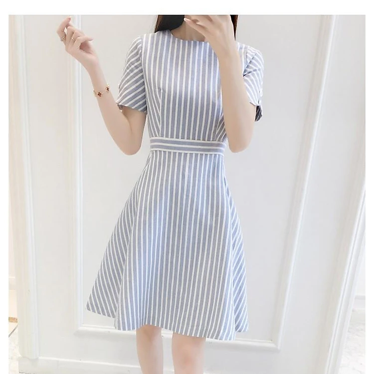 Đầm xoè nữ kẻ sọc, đầm vải thun co giãn 4 chiều D83