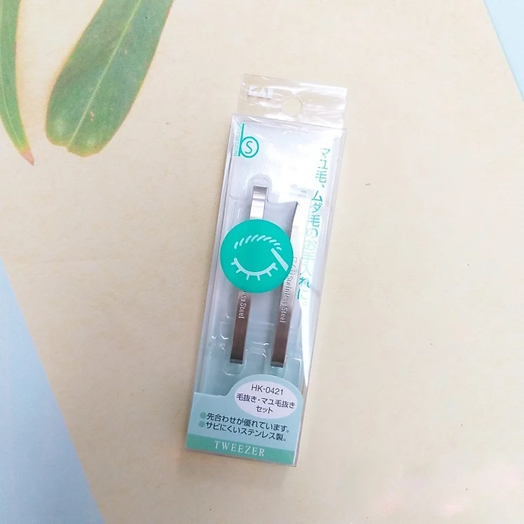 Hộp 2 nhíp inox cao cấp nhổ tỉa lông mày Kai (1 nhíp đầu to & 1 nhíp đầu nhỏ) tặng thun buộc tóc 10g