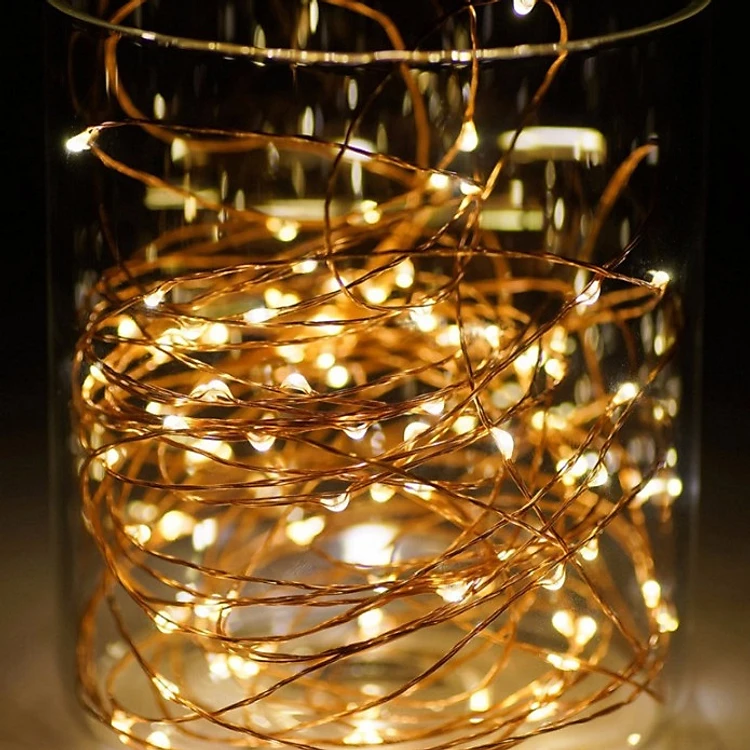 Đèn LED dây kẽm trang trí màu vàng dùng pin