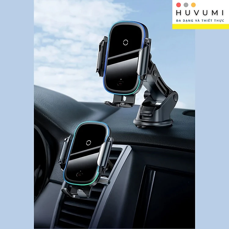 Bộ đế giữ điện thoại dùng trên xe hơi Baseus Light Electric Holder Wireless Charger 15W (tích hợp sạc nhanh không dây 15W và cảm biến tự động nhận diện thiết bị) LV637-BK [Hàng Chính Hãng]