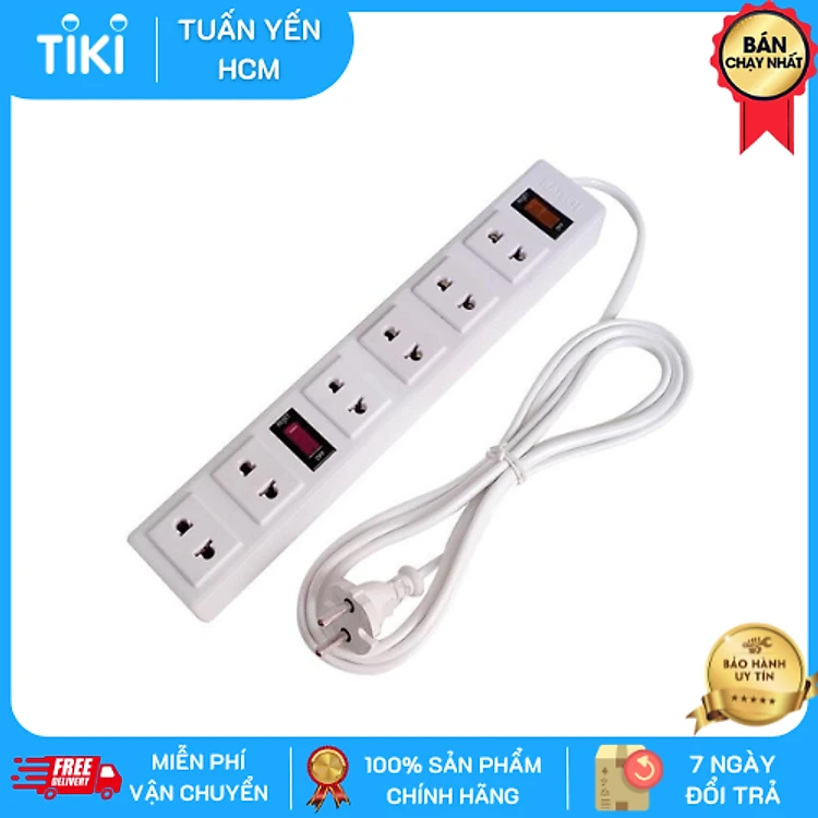 Ổ cắm Điện Quang ĐQ 001A-01-2M (6 lỗ 2 chấu dây 2 mét)