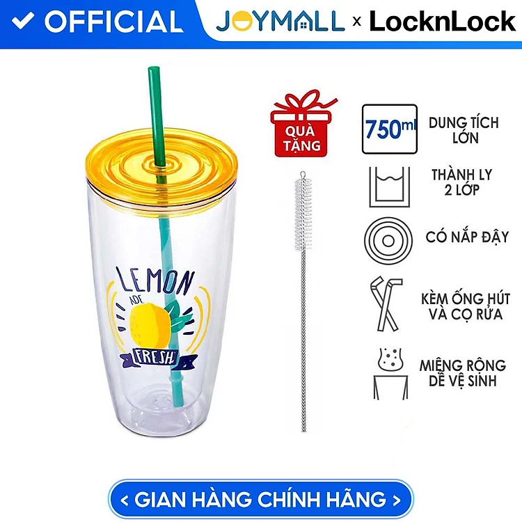 Ly nhựa 2 lớp Lock&Lock HAP507 750ml - Hàng chính hãng, có ống hút, có nắp đậy - Tặng kèm cọ rửa