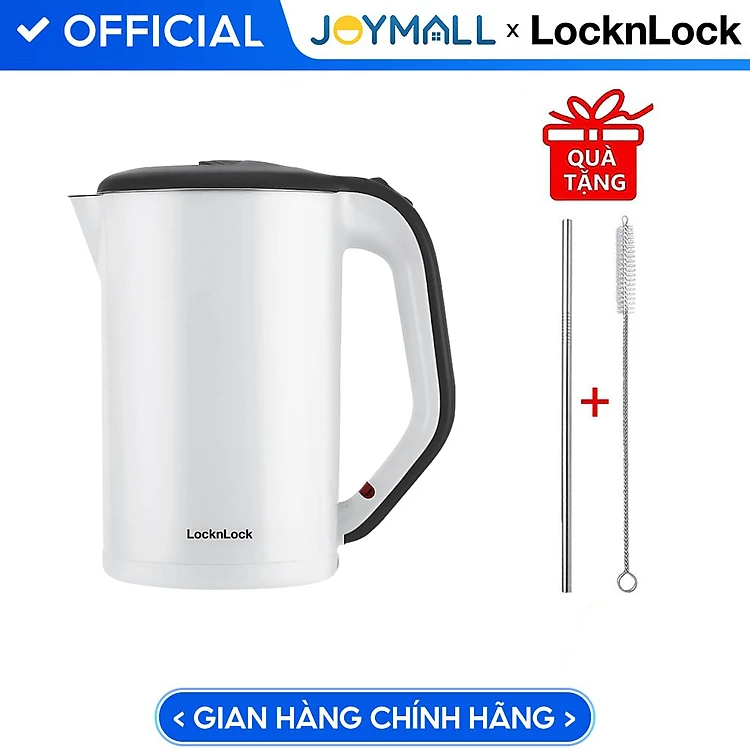 Ấm Đun Siêu Tốc Lock&Lock 2 Lớp Ruột Bình Bằng Thép Không Gỉ EJK738 (1.7L) - Hàng Chính Hãng, Tặng Kèm Cọ Rửa Và Ống Hút