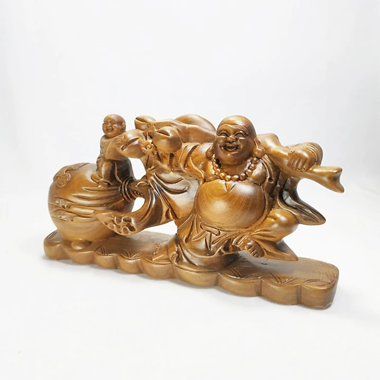 Tượng ÔNG DI LẶC KÉO BAO TIỀN gỗ Bách Xanh chuẩn - HÀNG MỘC -tượng phật