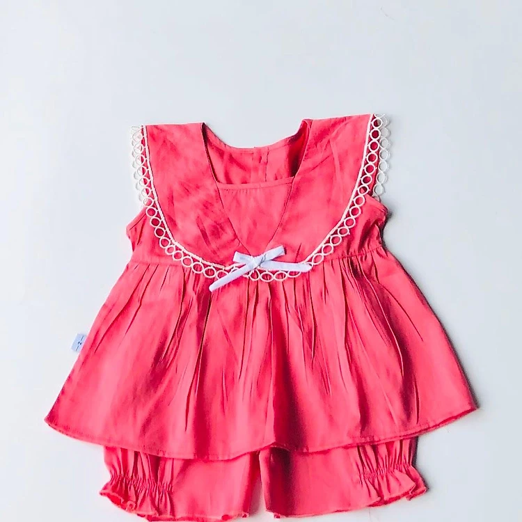 Bộ quần áo ngắn bé gái Hồng trơn cotton - AICDBGV7F4ZN - AIN Closet