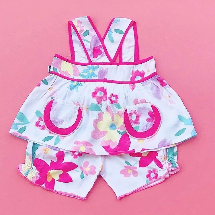 Bộ quần áo ngắn bé gái dây họa tiết Hoa hồng lanh lụa - AICDBGQX79WQ - AIN Closet