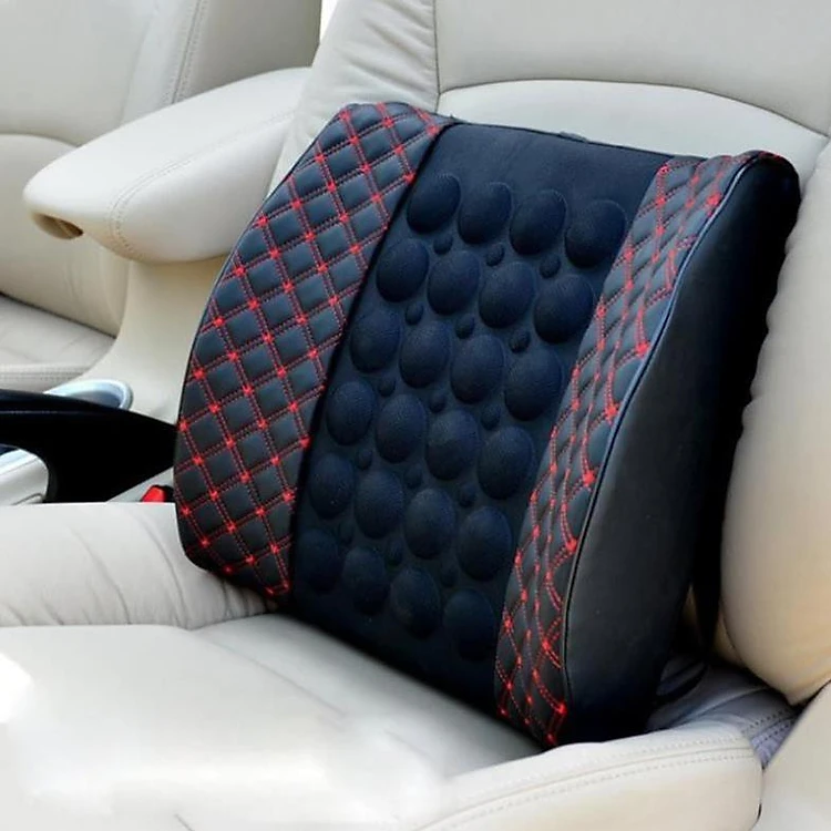 Đệm Tựa Lưng Massage bọc da trên xe oto- Màu Đen Chỉ Đỏ