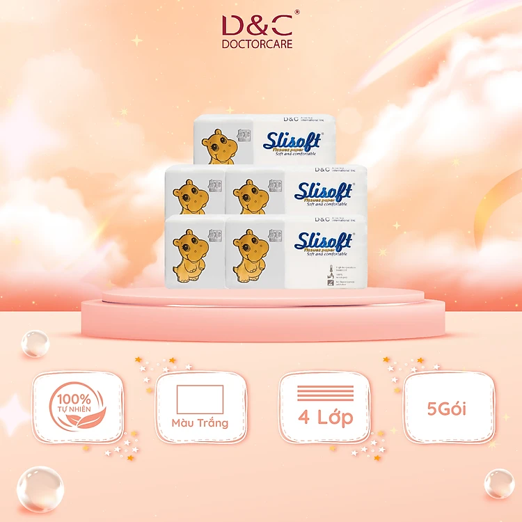 Combo 5 Giấy ăn Slisoft Trắng tự nhiên đa năng,khăn giấy rút không chất tẩy trắng an toàn cho cả gia đình