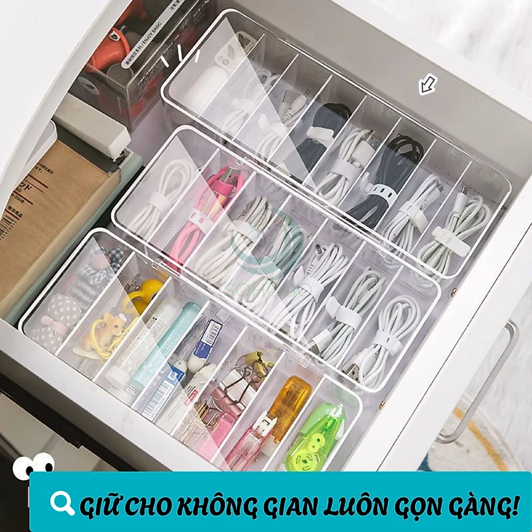 Hộp Nhựa Trong Suốt Đựng Cáp Sạc & Phụ Kiện - Hộp Chia Ngăn Đa Năng Lưu Trữ Dây Sạc- Hộp Đựng Dây Cáp Mini Có Nắp Đậy- Hộp Nhựa Trong Suốt Đựng Đồ Công Nghệ- Hộp Lưu Trữ Dây Điện, Củ Sạc, Văn Phòng Phẩm