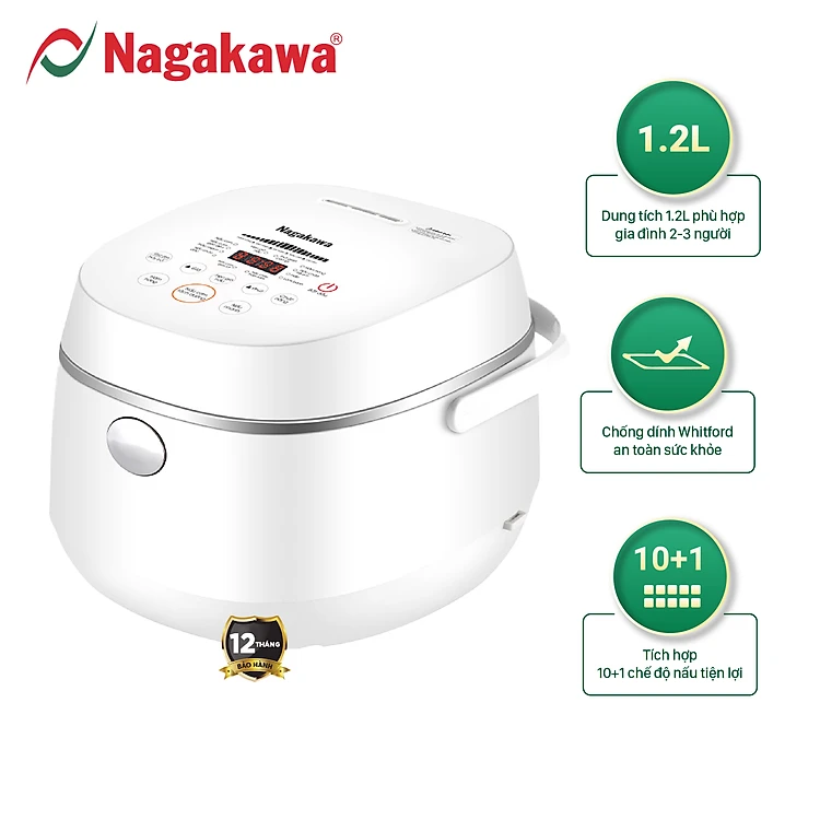 Nồi Cơm Điện Tử Cảm Ứng Nagakawa NAG0136 - Giảm tinh bột - Lòng niêu chống dính - 11 chức năng (1.2L - 500W) - Hàng Chính Hãng