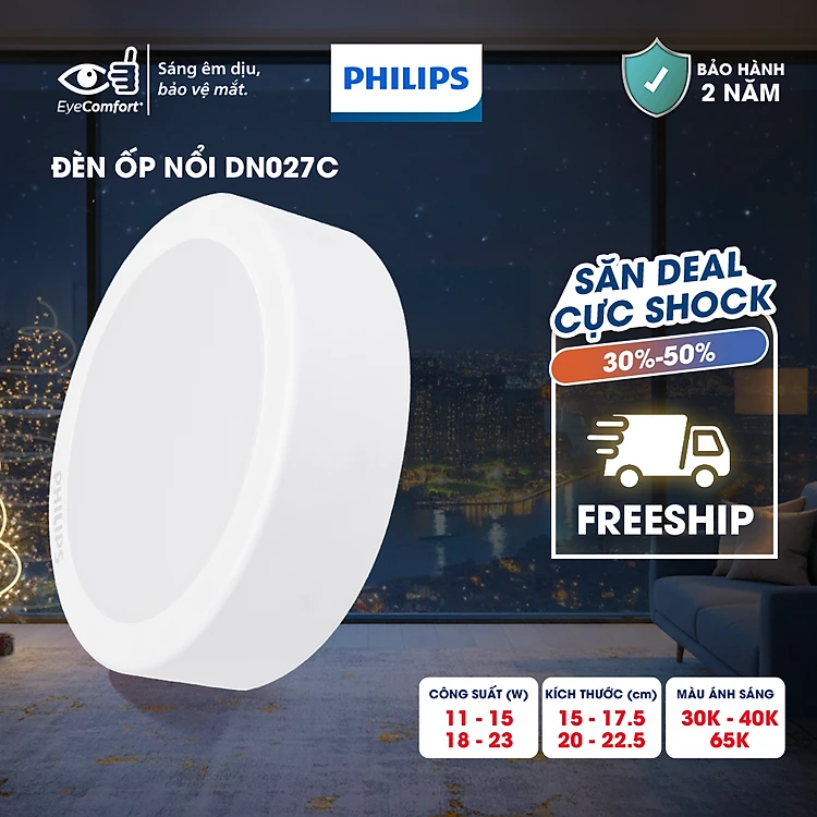 Bộ Đèn Philips LED Ốp Trần tròn lắp nổi DN027C- Công suất (11W, 15W, 18W, 23W)