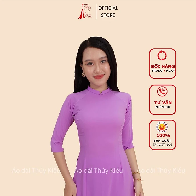 Áo dài trơn lụa Nhật cổ 2 phân màu tím nhạt AK15