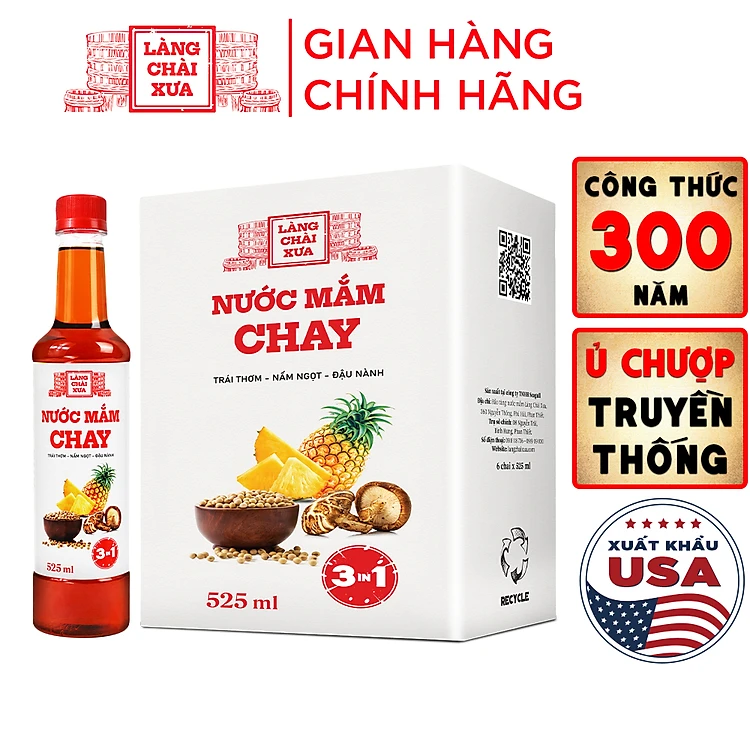 Đặc Sản Phan Thiết - Nước Mắm Chay 3 Trong 1 Làng Chài Xưa (01 Chai) 525Ml Trái Thơm Nấm Ngọt Đậu Nành 300 Năm Truyền Thống