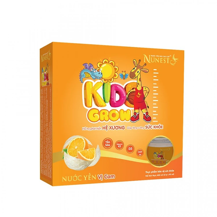 Lốc nước yến dinh dưỡng phát triển chiều cao cho bé Nunest Kid Grow vị Cam (6 lọ x 70ml)