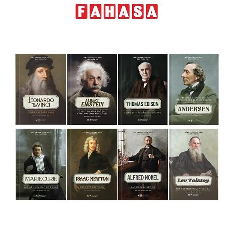 Combo 8 Cuốn Sách Kể Về Cuộc Đời Của Những Thiên Tài: Elbert Einstein + Thomas Edison + Andersen + Leonardo Da Vinci + Marie Curie + Lev Tolstoy + Isaac Newton + Alfred Nobel