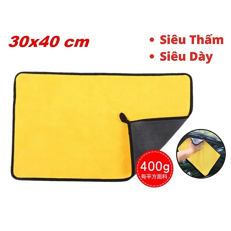 Khăn Lau Xe 2 Lớp Microfiber Siêu Thấm Siêu Mịn 30x60cm