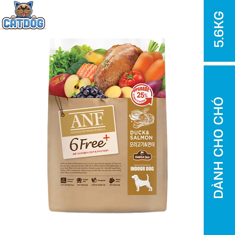 [DATE MỚI] [ 5.6KG] Thức ăn hạt cho chó ANF 6FREE PLUS vị VỊT + CÁ HỒI nhập khẩu Hàn Quốc