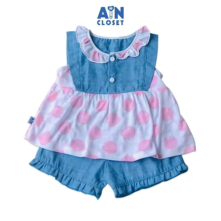 Bộ quần áo ngắn bé gái họa tiết Bi hồng xanh cotton - AICDBG6INTNL - AIN Closet
