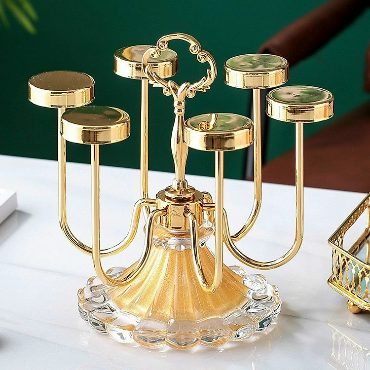 GIÁ ÚP LY CỐC XOAY 360 ĐỘ CHẤT LIỆU KIM LOẠI MẠ VÀNG CHÂN ĐẾ PHA LÊ ÁNH KIM SANG TRỌNG- VD93