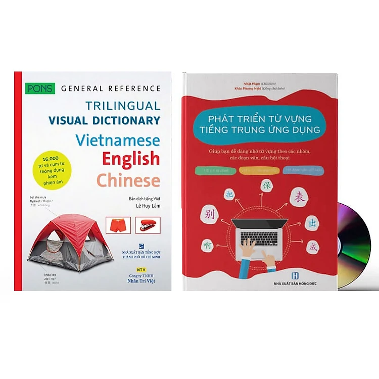 Combo 2 sách Từ điển hình ảnh Tam Ngữ Trung Anh Việt 16000 từ có mp3 nghe qua app– Pons General Reference Visual English Vietnamese Chinese Trilingual Dictionary +Phát triển từ vựng tiếng Trung Ứng dụng (in màu) (Có Audio nghe) +DVD tài liệu
