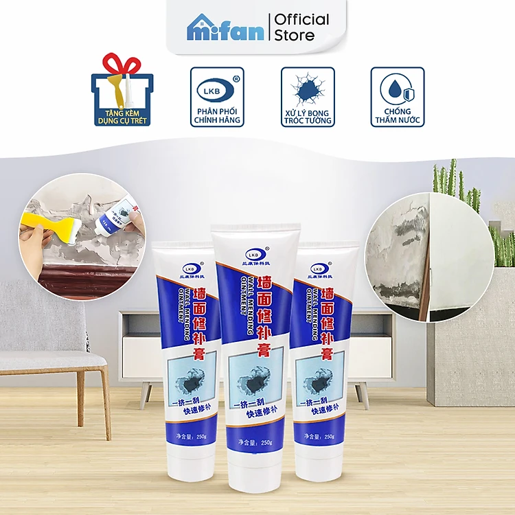 Keo Vá Tường Chống Thấm LKB 250gr - Trám Trét Vết Nứt Khe Hở Tường - Chống Mốc Ẩm Làm Sạch Tường - Mifan Hàng Chính Hãng