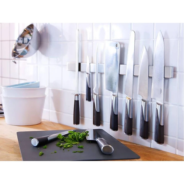 - Thanh treo có thể lắp đặt dễ dàng, có thể lắp trên bề mặt kính mà không cần khoan (mua thêm Bộ kit dán thanh treo dao lên kính
