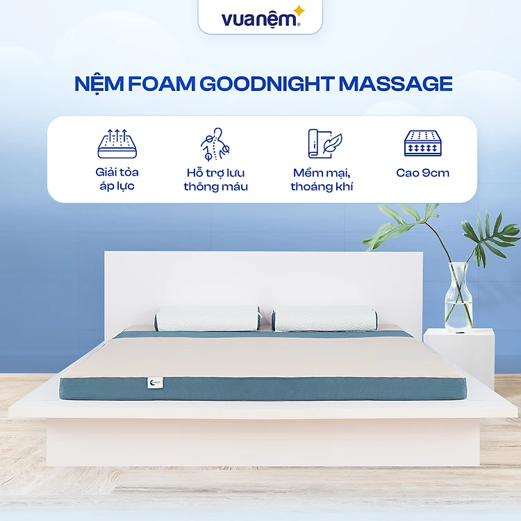 Nệm foam Goodnight Massage bán chạy tại Việt Nam 9cm tại Vua Nệm - Cấu trúc lượn sóng duy trì tư thế tự nhiên của cột sống