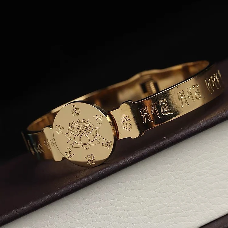 VÒNG TAY TITAN KHẮC HOA SEN VÀ CHÚ LĂNG NGHIÊM MẪU MỚI