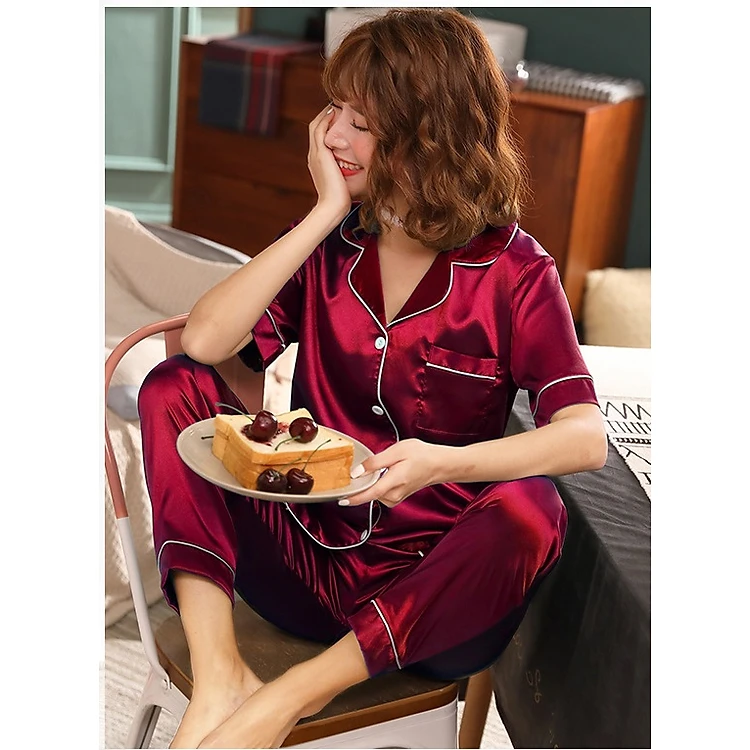 [CHẤT LƯỢNG] Đồ bộ Pijama Lụa cao cấp quần dài áo tay ngắn, pyjama tay ngắn hàng Quảng Châu loại 1