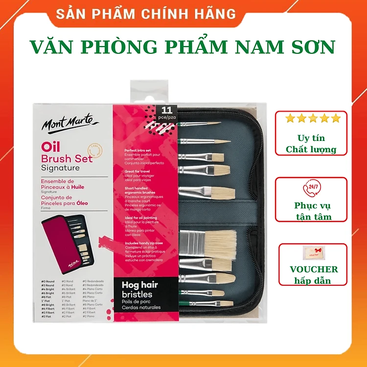 Bộ 10 cọ Mont Marte vẽ màu Acrylic, màu nước, màu sơn dầu