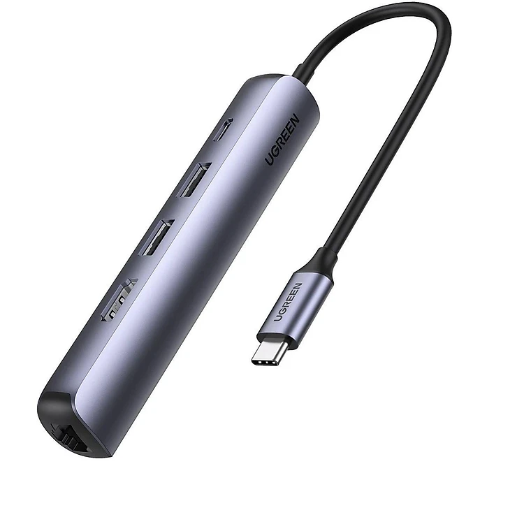 Bộ chuyển type c ra 2 * USB 3.0 A + HDMI + RJ45 giga + PD 5 trong 1 4K 60Hz PD 100W 1000Mbps màu xám Ugreen418bc10919CM - Hàng chính hãng