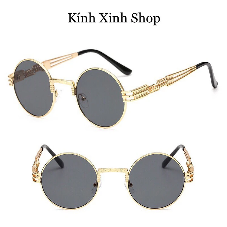 Kính râm, Kính mát Mắt tròn Kim loại lò xo Hàn Quốc - Hàng cao cấp (Đen)