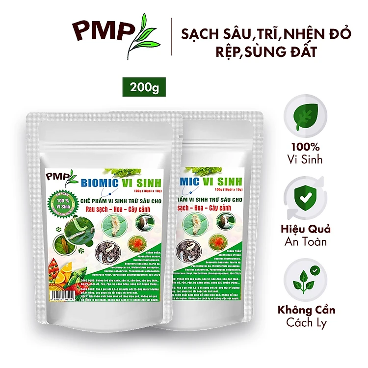 Combo 2 Túi Chế Phẩm Vi Sinh Biomic PMP Chuyên Diệt Sâu, Nhện Đỏ, Rệp, Sùng Đất, Tuyến Trùng Cho Rau Sạch, Hoa, Cây Cảnh