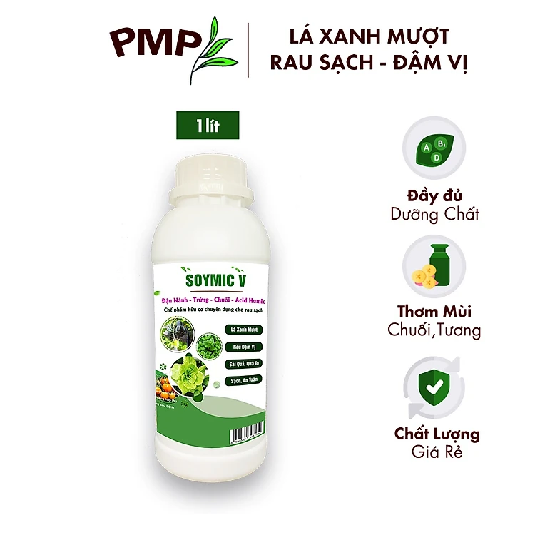 Phân SOYMIC V PMP Siêu Phân Bón Ủ Vi Sinh Từ Đậu Nành, Trứng, Chuối, Humic, Vi Lượng Cho Rau Sạch 1000ml