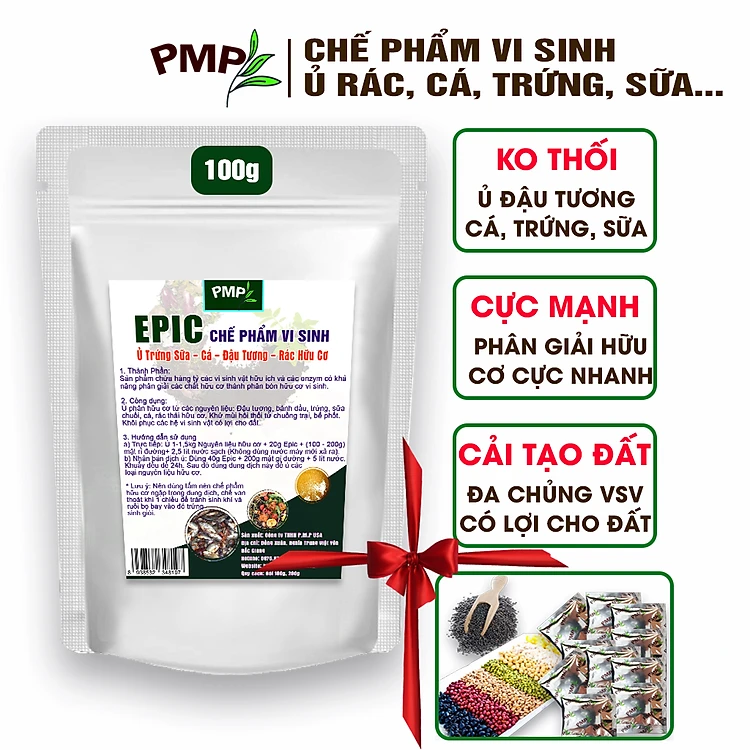 Chế phẩm vi sinh Epic PMP Ủ Rác Hữu Cơ Sinh Hoạt, Đậu Nành, Trứng, Chuối, Cá 100g