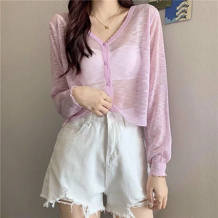 Áo khoác len cadigan mỏng 5 khuy màu pastel nhẹ nhàng