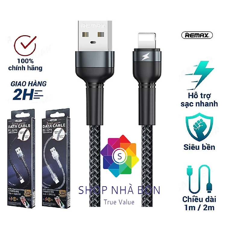 Dây cáp sạc Remax RC-124i hỗ trợ sạc nhanh - Hàng Chính Hãng