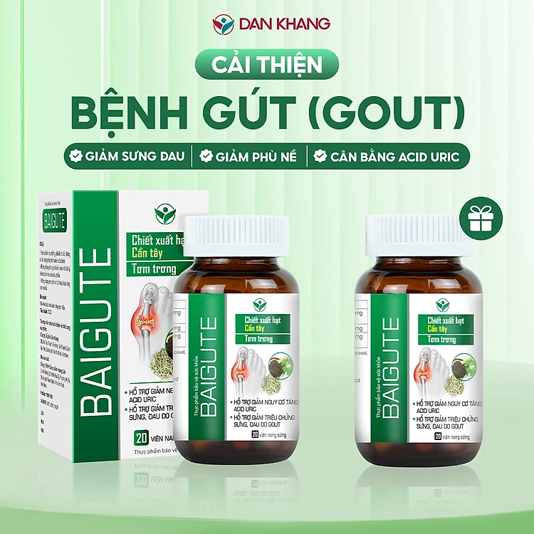 Viên uống Hỗ Trợ Kiểm Soát Các Bệnh Về Gout, Hỗ Trợ Giảm Đau Do Gout Baigout (Hộp 20 Viên)